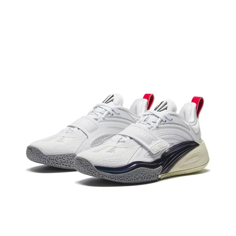 This colorway represents Kyrie’s duality on and off court. The deep black represents his focus and strength, while the crisp white embodies his speed and agility. Tying it all together is the vibrant red heel strap, merging these elements into a perfect balance